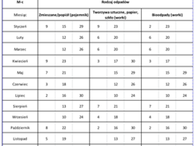 Harmonogram wywozu odpadów